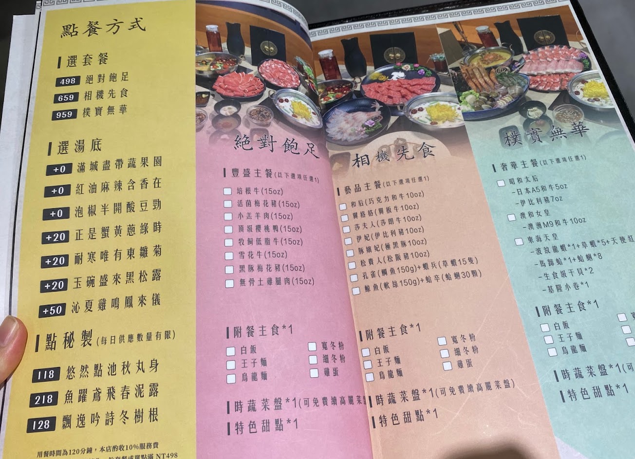 湯頭是從生水開始煮 但只給一個半小時用餐時間 客人的火鍋料根本來不及煮完