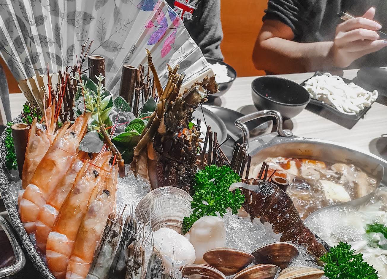 巧克力和牛擺盤蠻美的,放成裙子樣,店家有說涮六秒就好,個人覺得吃起來蠻好吃的,不會膩口。 東海天皇看起來超浮誇的,有波紋龍蝦/天使紅蝦/草蝦/馬蹄蛤/蛤蜊/生食級干貝/基隆小卷,個人覺得龍蝦和馬蹄蛤有讓我驚艷,而且那盆海鮮夭壽重的。 —————————————— ?支付:現金/街口支付 ?發票:電子發票(可存載具)