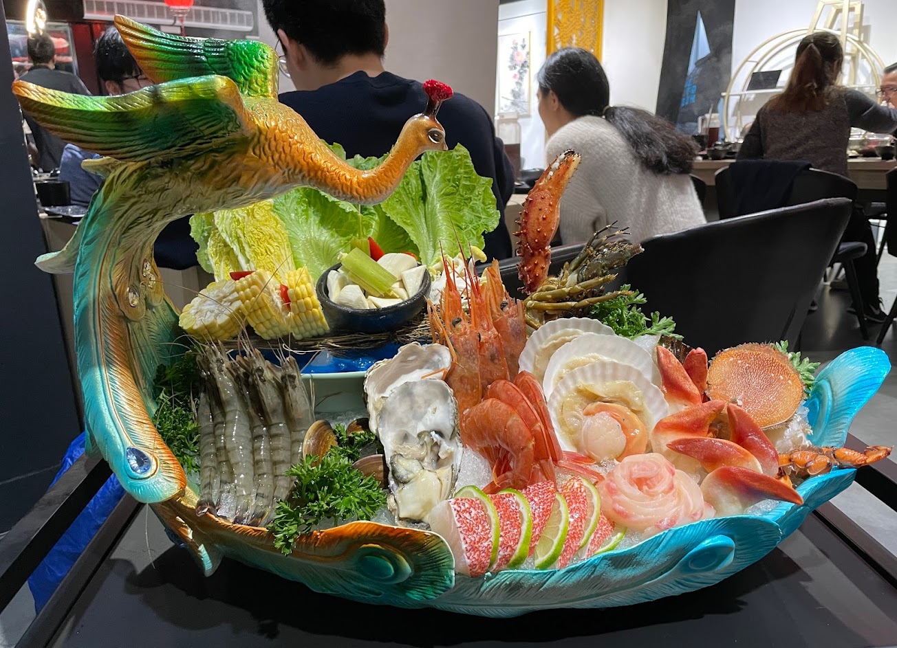 服務滿分,時刻都有人看顧客人桌上的用餐狀況,這點100分。 店內裝潢有呼應店名的風格,但細節上看得出來預算有限。廁所可加強一下,馬桶水很難沖乾淨。 肉類與海鮮擺盤都很好看。我們點了1198雙人餐,肉質普通(但份量不少),單點的台南溫體牛也覺得還好,額外點的海鮮也蠻普通的,如果單論食材品質,在競爭激烈的台北火鍋店比較下來CP值略低。湯頭特色都有做出來,也不會太重口味,恰如其分,但加價要50-90,一樣偏貴(似乎有調漲價格)。