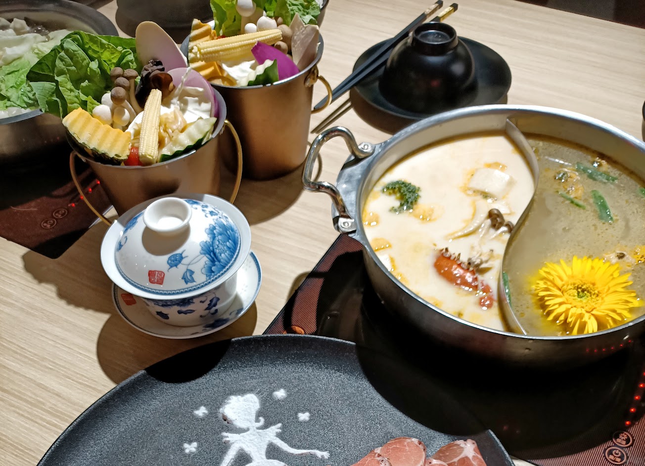 公館新開的中高價位火鍋店 裝潢設計華美,連菜單都做得很有質感 各品項名稱也取得很浮誇 推薦蟹黃湯頭和東雛菊湯頭 前者濃厚鮮甜,後者很有特色,能夠品嘗到熬煮的食材精華 肉類也很新鮮,下次想來嚐試海鮮 —————— 美中不足的地方: 感覺店內服務人員不足 已經說了2-3次要續高麗菜 卻遲遲沒有送來 湯頭補的速度也越來越慢 另外也希望飲料品項可以增加 目前只有提供每桌一壺烏梅汁無限暢飲