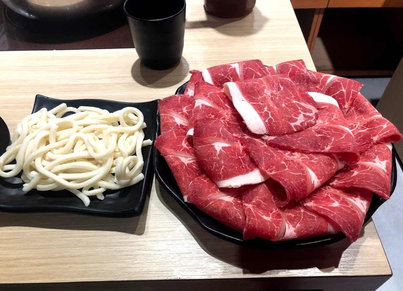 海鮮都很新鮮,不會因為是防疫套餐而降低品質、雪花牛略油,梅花豬爽口、烏龍麵很Q