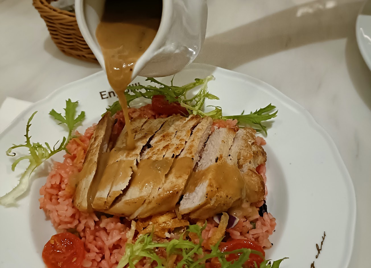 朋友聚餐,中午選擇到這裡用餐,用餐時間2小時。服務員都十分親切。墨魚麵口感很好,奶油菌菇燒烤猪里肌和番茄蒜香奶油燒烤牛肉第一口原味就嚐的出肉質本身的鮮嫩,淋上醬汁增添更豐富的層次感。南瓜濃湯裡頭有切丁秋葵以及其他蔬食根莖類,搭配濃湯一併食用挺好的。甜品鬆餅原味嚐起來綿綿的就很好吃了,點綴在周遭的甜品對於不太常吃甜食的人來說,甜度剛好沒負擔。很棒的用餐體驗。
