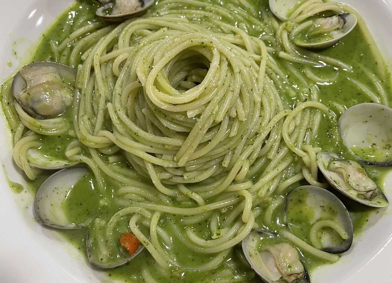 今天點青醬蛤蜊義大利麵,青醬的醬汁吃的到蛤蜊的鮮味,醬汁濃郁飽滿,價格親民。
