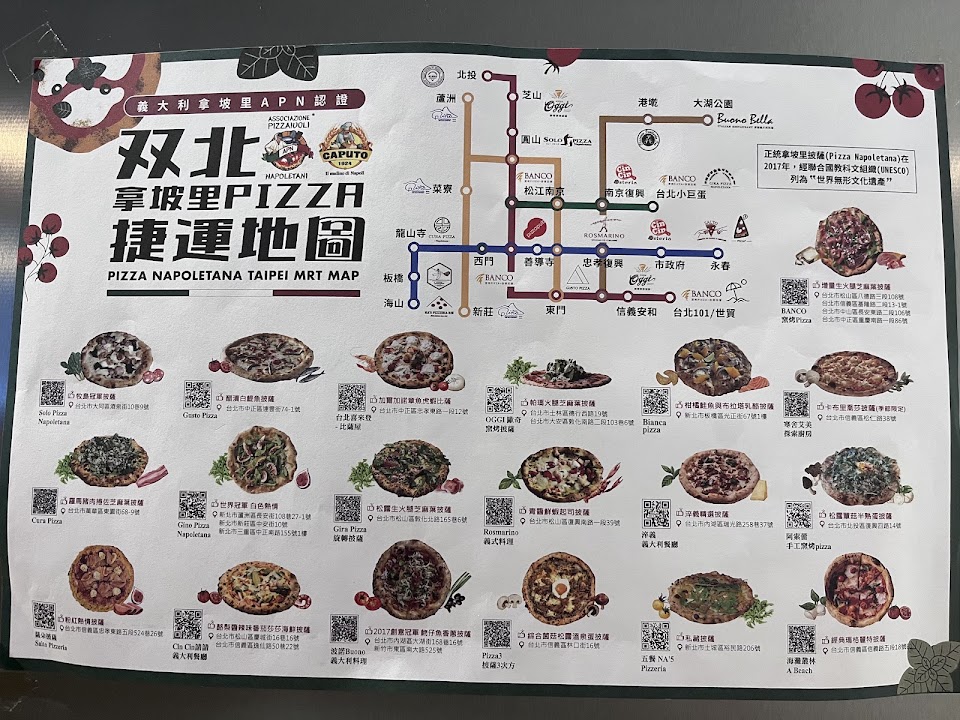 位於東門7號出口步行五分鐘內的一家窯烤披薩店,內用區偏小,吧台四位、兩人座大概4-5組、4人座2組位置就滿了,當天有先打電話訂位,內用低消為249元/1人。飲料的部分點了薑汁汽水49元可口可樂49元,雖然以餐廳來說還可接受嗎?但如果提供冰塊杯或倒出來可能能更符合其49元的價值。餐點的部分點了店家推薦的煙燻鮭魚披薩479元,其實真的不便宜,看評論蠻期待的,但跟朋友拍照大概不到10分鐘享用便能感受到冷了蠻油的,整體餅皮是薄的,每片披薩上方都一塊燻鮭魚片但不會到很大塊,披薩尾巴偏乾,後來和朋友討論加點了沾醬美式辣醬20元,但沒很合我及朋友的口味。甜點的部分點了提拉米蘇90元義式凍雪糕70元,甜點的部分感覺是預先備好一些用塑膠容器裝的,原本以為會放在盤子上?提拉米蘇口味有苦不會太甜那種,沒有酒味,整體中規中矩,義式凍雪糕聽店員說是鮮奶油、檸檬皮去做的,整體是比提拉米蘇來的清爽,但兩個甜點都不會來到驚艷。