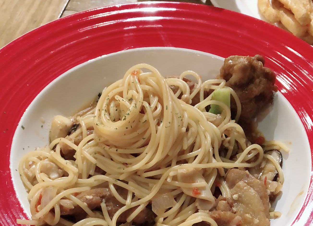 點了推薦的椒麻雞義大利麵,雞肉很柴