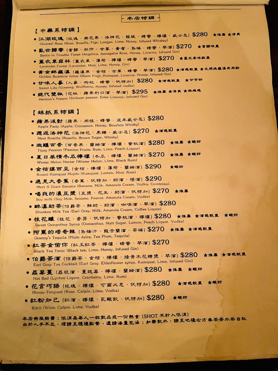 已二訪!最招牌的就是綜合滷味,調酒都很特別,目前點下來並沒有地雷酒!絕對絕對會帶外國朋友來的一家富有台灣特色的酒吧!