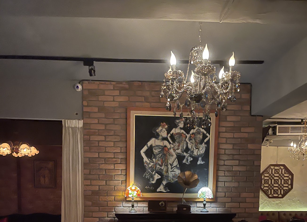 桌椅、燈飾、窗戶、牆面…等等擺設,很有復古的風格,又帶些華麗感,頗有近期在追的電視劇花燈初上的年代感。