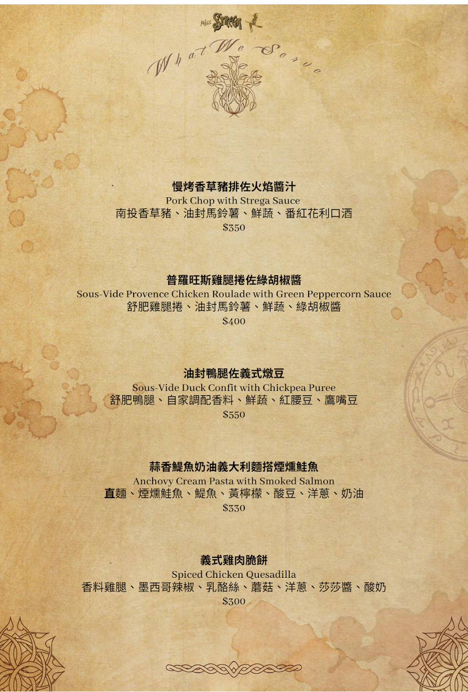 餐點比預想的好吃很多的餐廳,每個餐跟酒飲都可以看到店家用心的地方,女巫大釜裝飾很美搭配哈味很驚艷,主餐的馬鈴薯泥配上鷹嘴豆是十分稱職美味的配角,雞腿肉上的甘草醬會讓人有回到小時候的感覺,豬排上菜後淋上的點燃醬料也很棒!