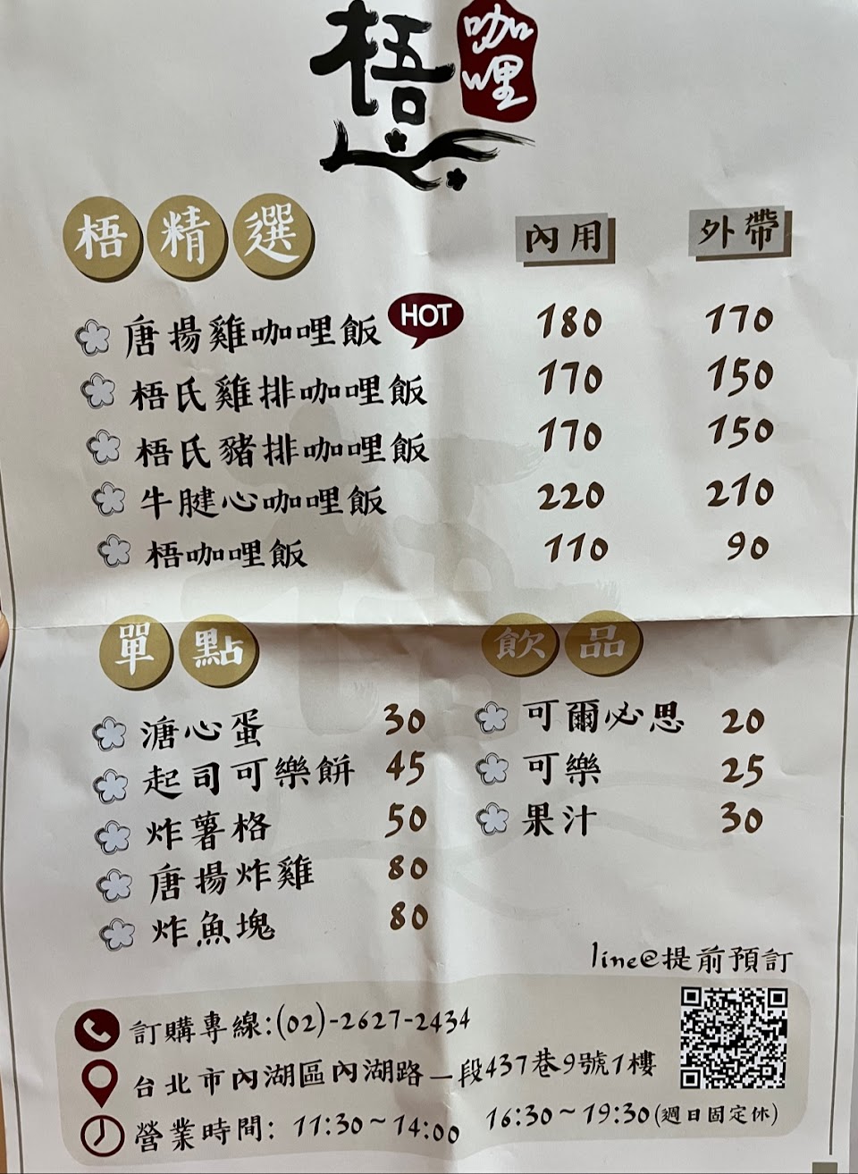 2024最新在地推薦餐廳的菜單_梧咖哩 Wu Curry的菜單、圖片