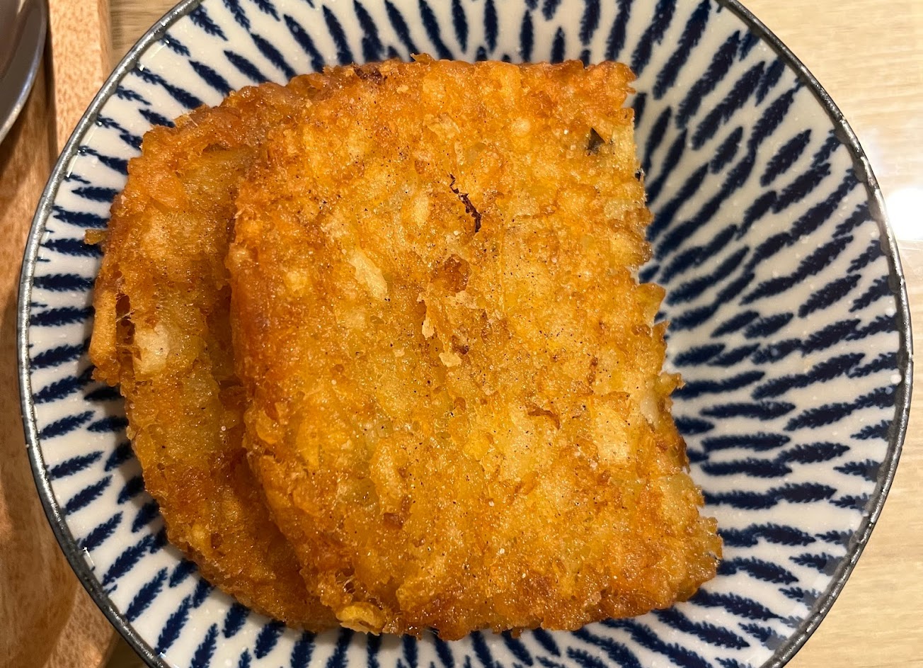 家附近新開的溫馨小店,空間不大但很有溫度,主要販售丼飯跟咖哩飯,薯餅賊好吃而且一個才10元,根本可以為了薯餅來,溏心蛋中間溏心控制十分得宜,但是丼飯醬汁稍嫌過多,有點太濕。