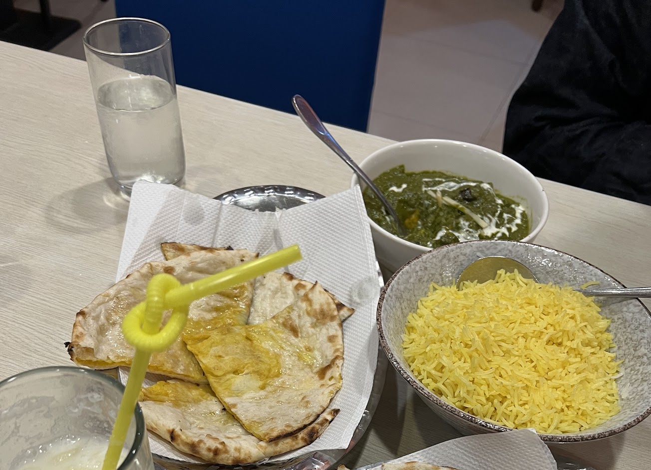 老闆不會中文,雖然在工作但看起來很chill,氣氛很棒,烤餅必吃,外層酥脆內層口感Q彈,單吃就可以吃到麵團和奶油香,每個口味烤餅都好吃。 咖哩口味偏重,香料味很香,裡面多種台灣見不到的口味,還有許多種米可以選擇,但不建議印度米,口感特殊台灣人可能吃不習慣。 甜點米布丁很特別,像是有蛋香味的冷稀飯,吃起來很順口,幸福感滿滿。 餐點:5 服務:5 氣氛:5