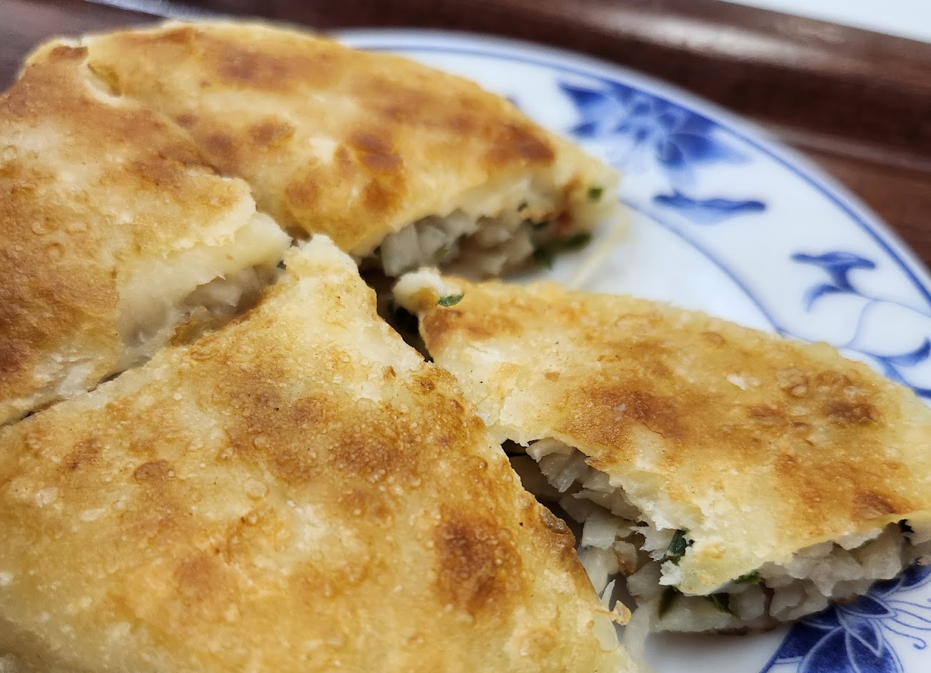 蔥油餅是厚的,很好吃~相較之下蘿蔔絲餅顯得沒那麼美味