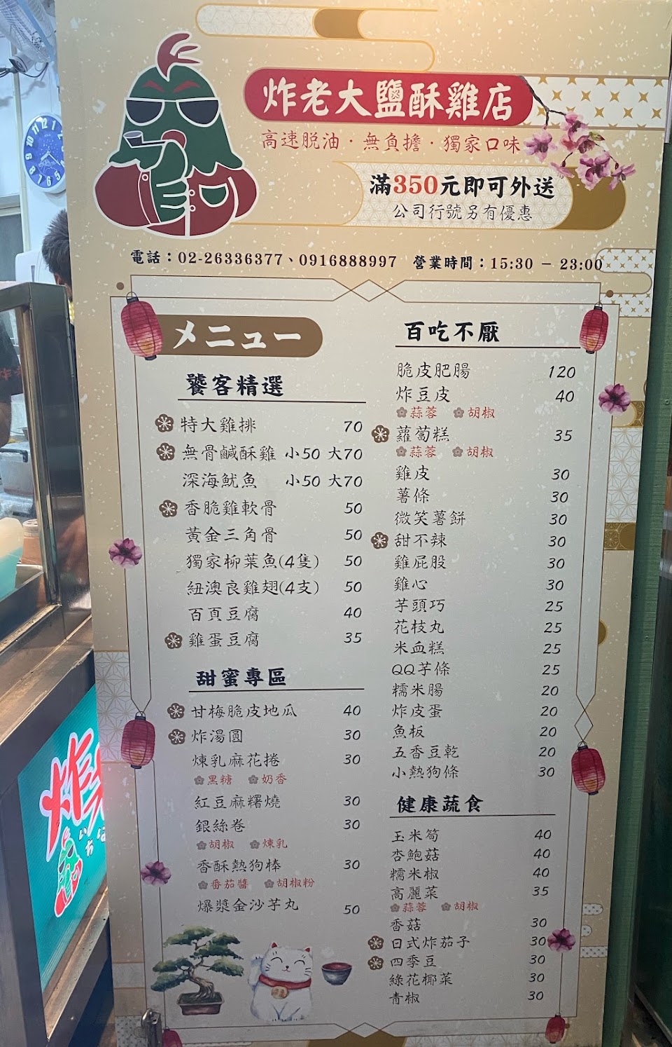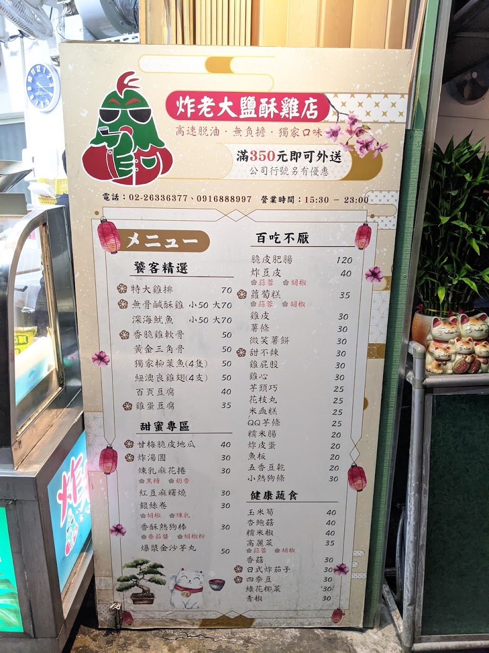 有做外送平台,單量很大,等候時間較長,但雞蛋豆腐與鹹酥雞都很好吃,尤其雞蛋豆腐,內裡嫩可謂基本,主要是外皮酥也不會過老,在不少鹹酥雞店都會有的狀況這裡沒有…喜歡買回家單吃,或者煮咖哩後加進去一起拌著吃,或者麻婆豆腐的豆腐換成這個,外層酥皮很容易吸附醬汁,配飯非常好吃!只是要最後在丟進去否則真的會爛掉
