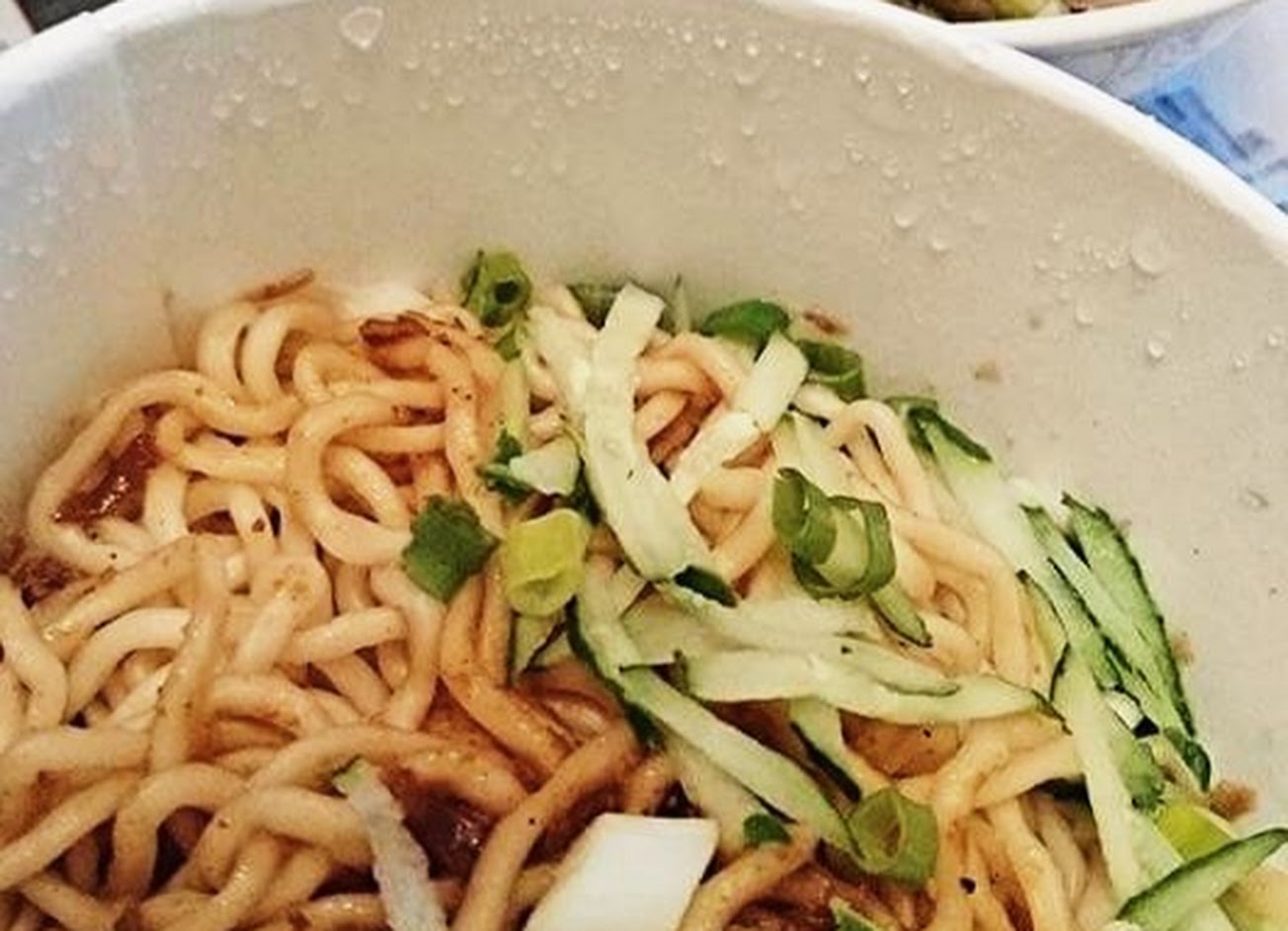單純卻好吃的麵,有香氣、麵咕溜,原味乾拌麵類似豆瓣炸醬,辣椒有小魚乾的香味,小菜看起來乾淨好吃(沒吃到,只能用看的),動作也蠻快的,住附近喜歡吃麵的可以嘗試看看。