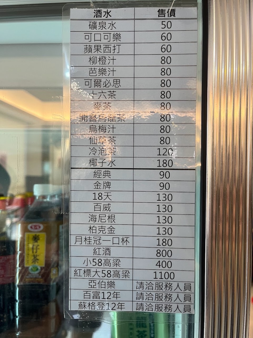飲料有很多選擇,有無糖無咖啡因的十六茶可以選擇還不錯。而且冰箱上面有寫飲料價位,可以自己拿。也有賣大瓶礦泉水。