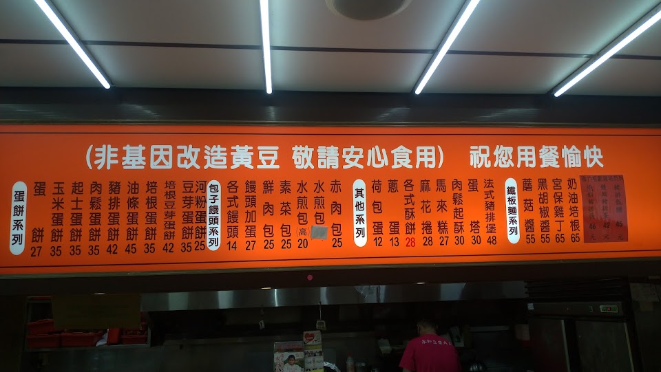 位於東湖樂活公園邊,各式傳統早點都有,包子,饅頭,蛋餅,蘿蔔糕,燒餅,油條等,價格大约都是銅板價,燒餅油條加荷包蛋再一碗熱豆漿,傳統美食很棒。室內空間較小,人潮多時點餐結帳速度較慢。