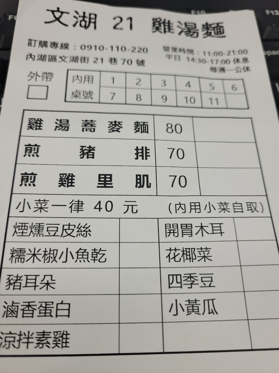 從以前舊店到搬到新店支持到現在,是長期老顧客。 一路漲價可以理解原物料高漲。這次又發現微漲價,但食物卻退步了! 以往美味的酒香嫩煎豬排走鐘, 豬排變小塊就算,口感也變的很硬且不入味!真的很失望也很難過喜歡的店走樣了,希望能變回以前純樸美味每次吃完會令人感動的文湖雞湯麵。 服務 外送 餐點類型 晚餐 平均每人消費金額 $200-400