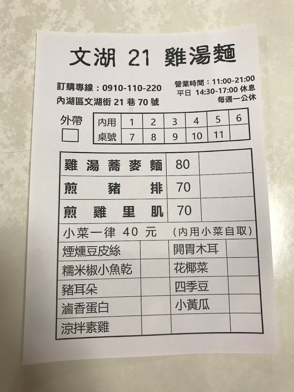 肉70 麵80 小菜40