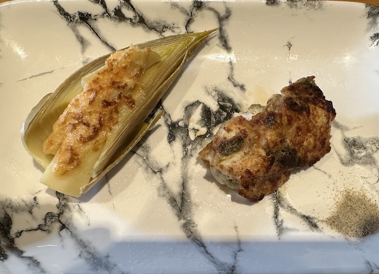 酥炸白子配味增燒冬筍,口感極度對比,冬筍的甜、融在白子的莫名濃郁之中,幸福之外,覺得深刻。百合泥球天婦羅、佐炸山藥薄片,百合與山藥,若即若離,兩者有幾分神似的口感,細細吃,味道卻似又天南地北,山藥高雅、百合耽溺,十分曖昧。神品。