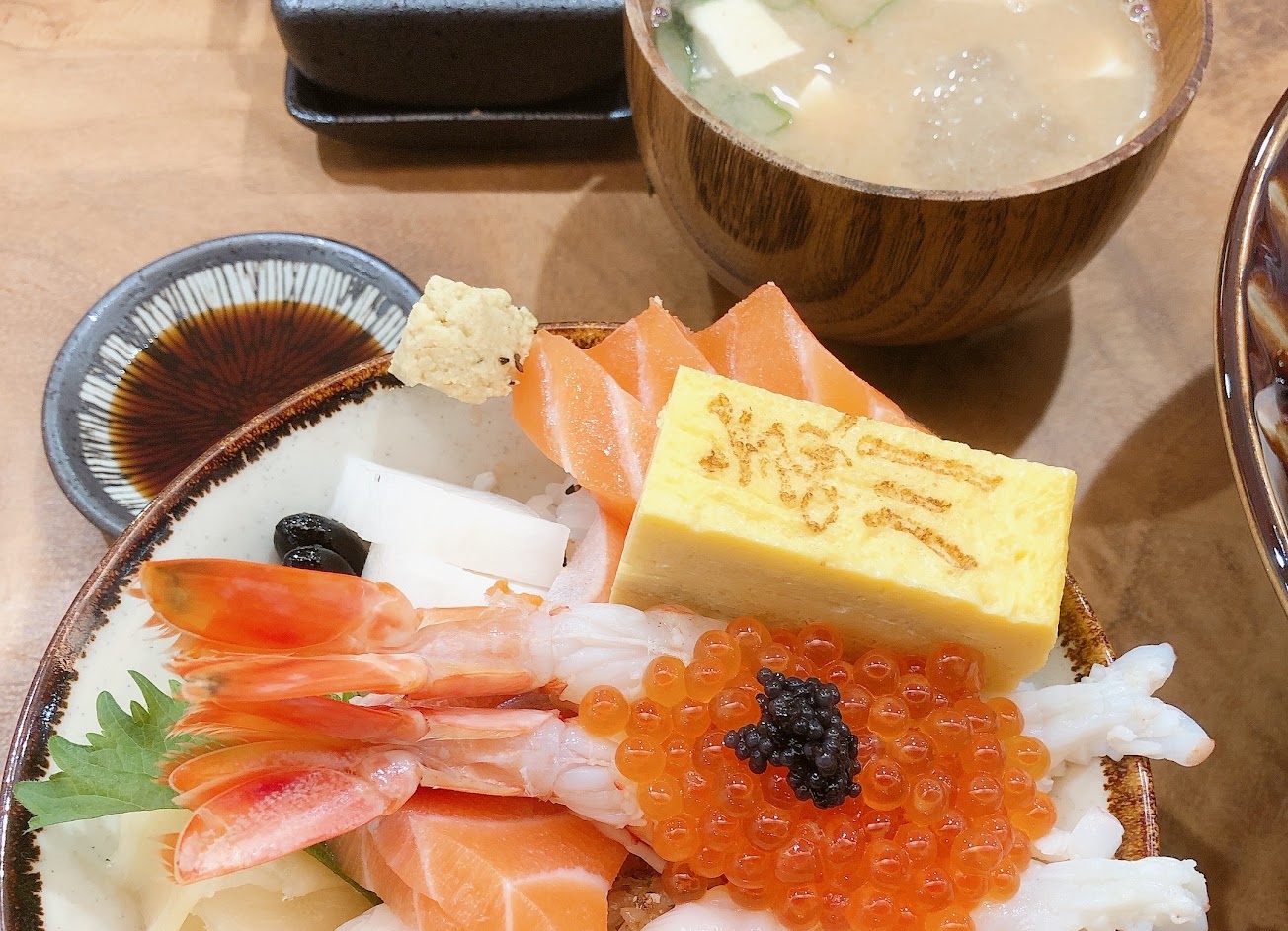 老闆親合力很強,自薦生鮮級干貝,吃完後果然真沒有讓人失望。生鮮級的干貝是前天才空運來台未經過冷凍處理,與生食級不一樣。今天很意外的被招待了一碗茶碗蒸,灑花。這裡主要是吃丼飯,推薦CP值絕對爆表的海鱻丼。可以吃到各種不同魚類與一顆干貝、一隻天使蝦,這裡蝦子處理的很棒好像稍微川燙過的樣子?這樣口感會較脆更甜!配上現磨的哇沙米,微醋的越光米灑上香鬆,整碗吃起來負擔不大,又能享受海味!整間店明亮整潔,座位走道區域滿寬闊的,靠窗的插座有USB接頭滿貼心的。非常推薦來吃干貝與天使蝦,干貝上有加點檸檬還是橘子醬之類的更增干貝的清甜又很清爽。味增湯可以續,蝦味十足又香,續湯時老闆很有誠意的煮過蝦頭才送上來~暖心滿滿。