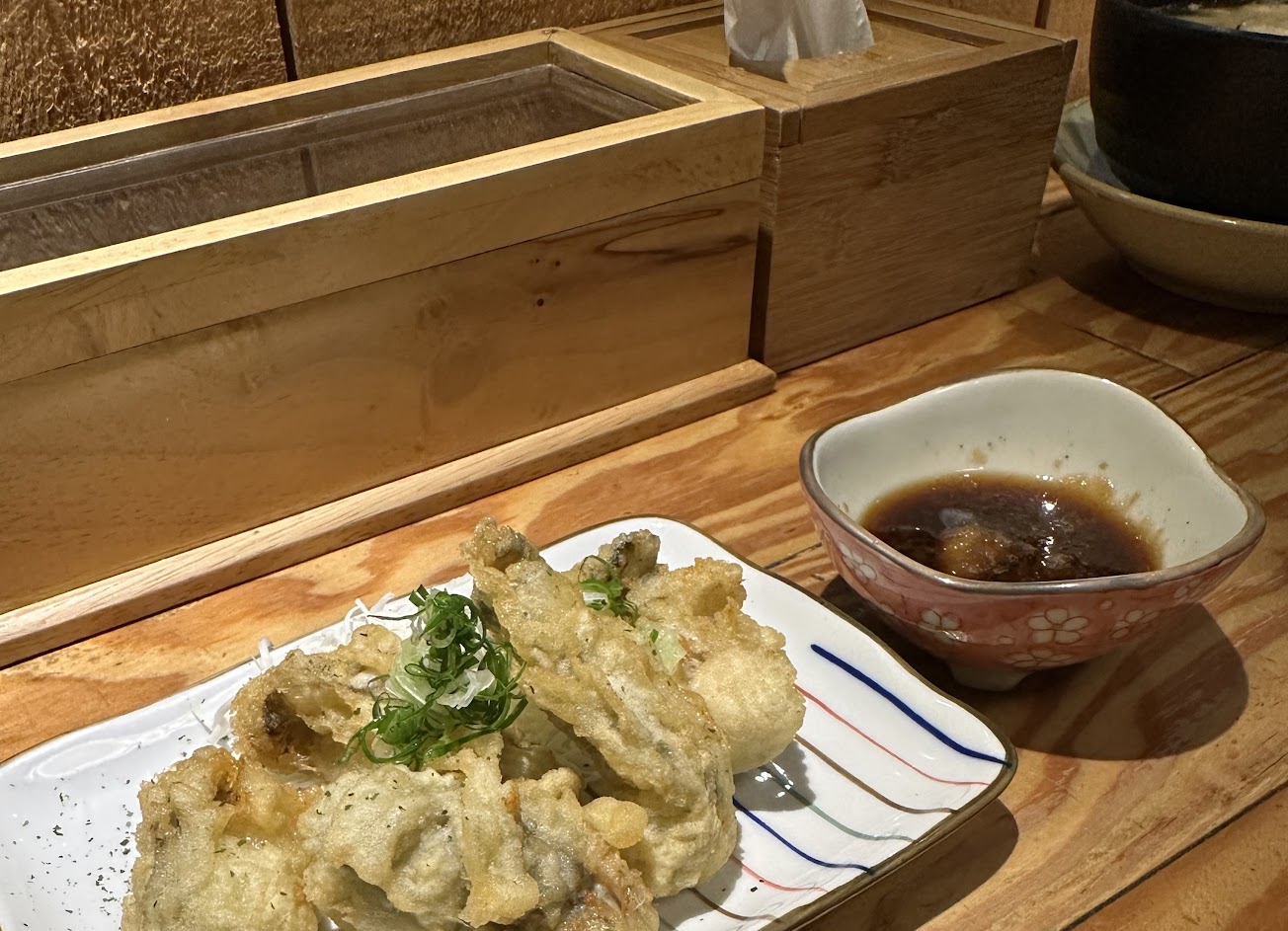 假日晚上不用等,座位算寬敞,上菜速度普通,餐點cp尚可,魚骨味增湯很大一碗公$60,裏面滿滿魚骨塊,但蛤蜊味增湯,蛤蜊不多也小顆、還帶有腥味。 蓋飯品質不錯,炸厚案生蠔很有水準,好吃