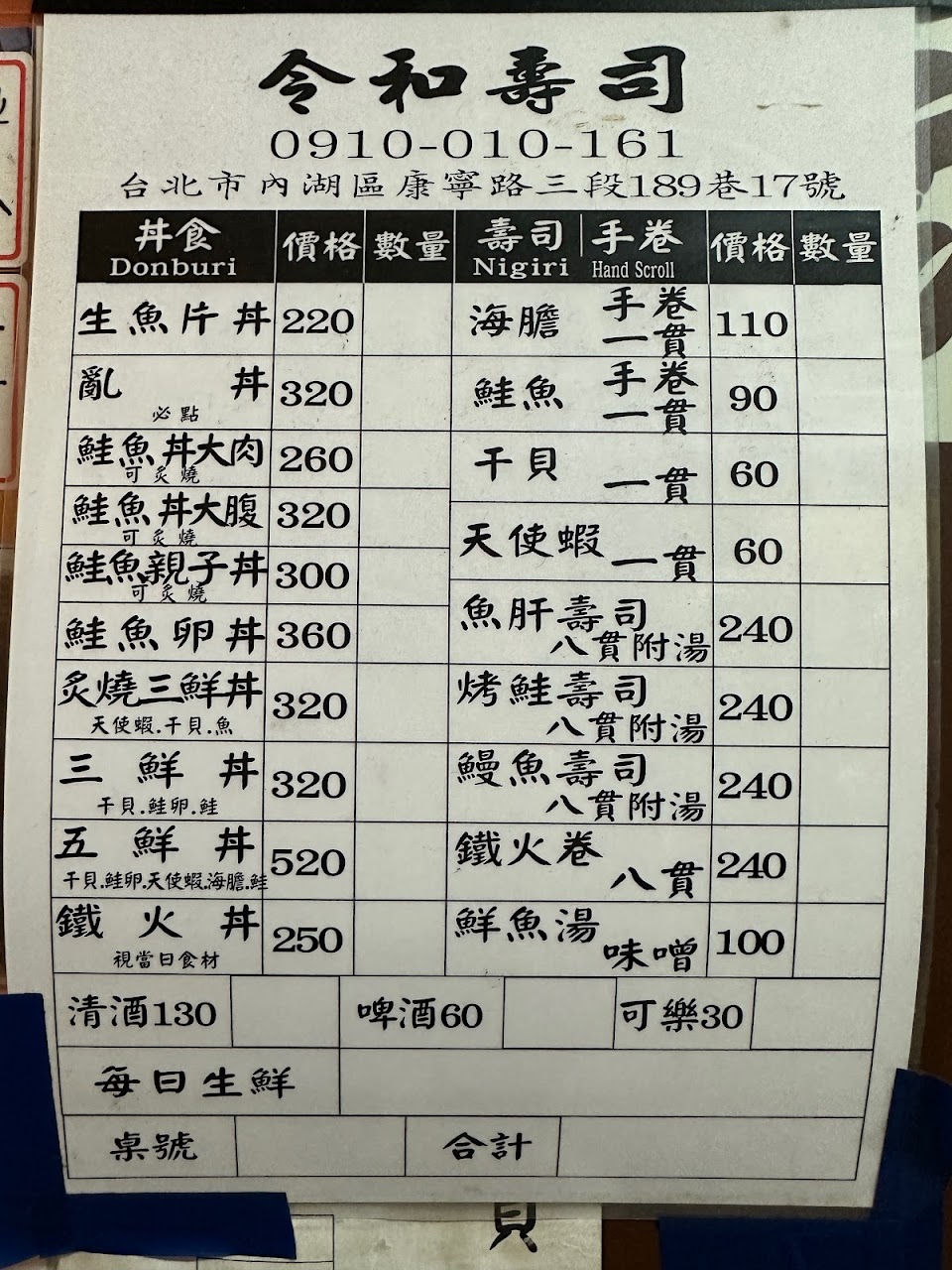 2024最新在地推薦餐廳的菜單_令和壽司屋的菜單、圖片