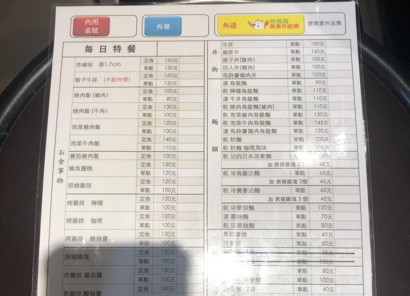 在店裡吃過也在Uber Eats上叫過。大多餐點價位落在100~150元之間,平價的家庭式日本料理。