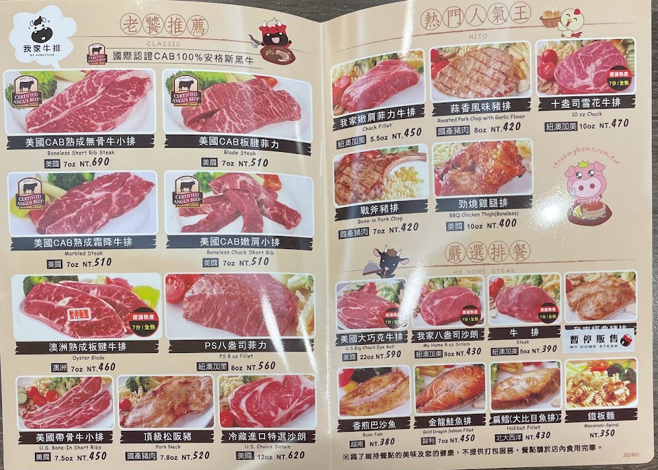 2024最新在地推薦餐廳的菜單_我家牛排的菜單、圖片