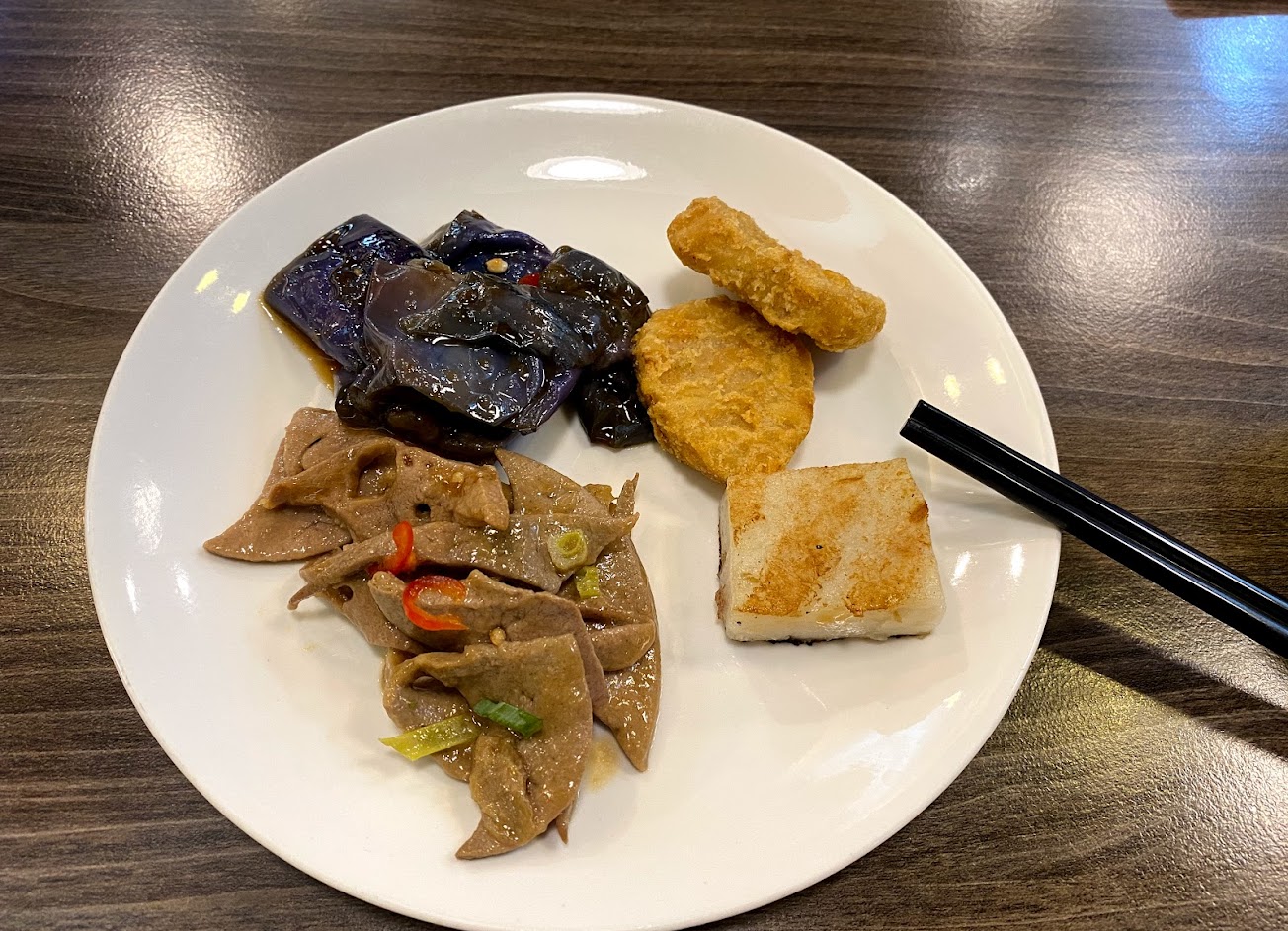 自助吧多元,有滷肉飯、沙拉、麻辣料理和甜點,味道不是頂級但還不錯。