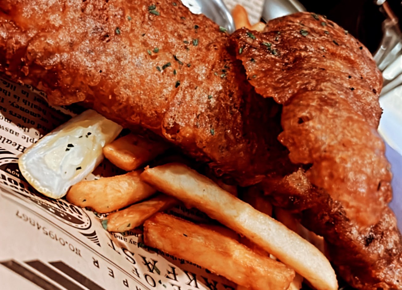 前菜點了英式炸魚薯條,魚炸的很嫩,但因為很大一塊要切,後面都被切的有點醜醜的。這道搭配的薯條也很好吃,外酥內鬆的口感。
