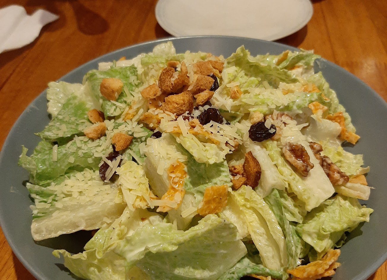 喜歡凱薩沙拉(+雞肉),上面有灑上多力多滋,增加口感。