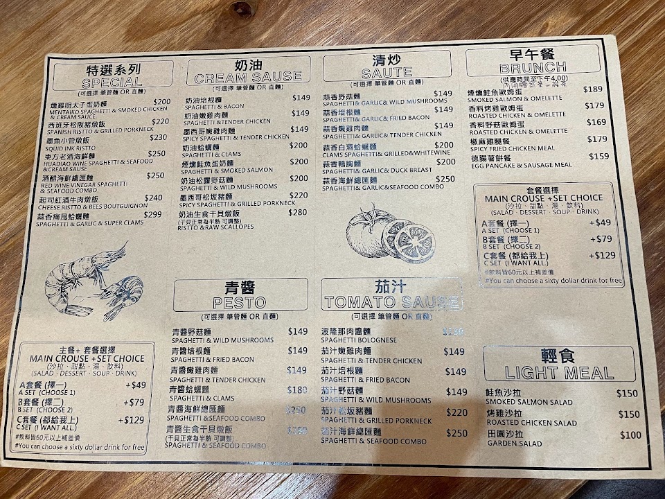 蒜香海鮮總匯麵 炸物拼盤 煙燻鮭魚歐姆蛋 早午餐