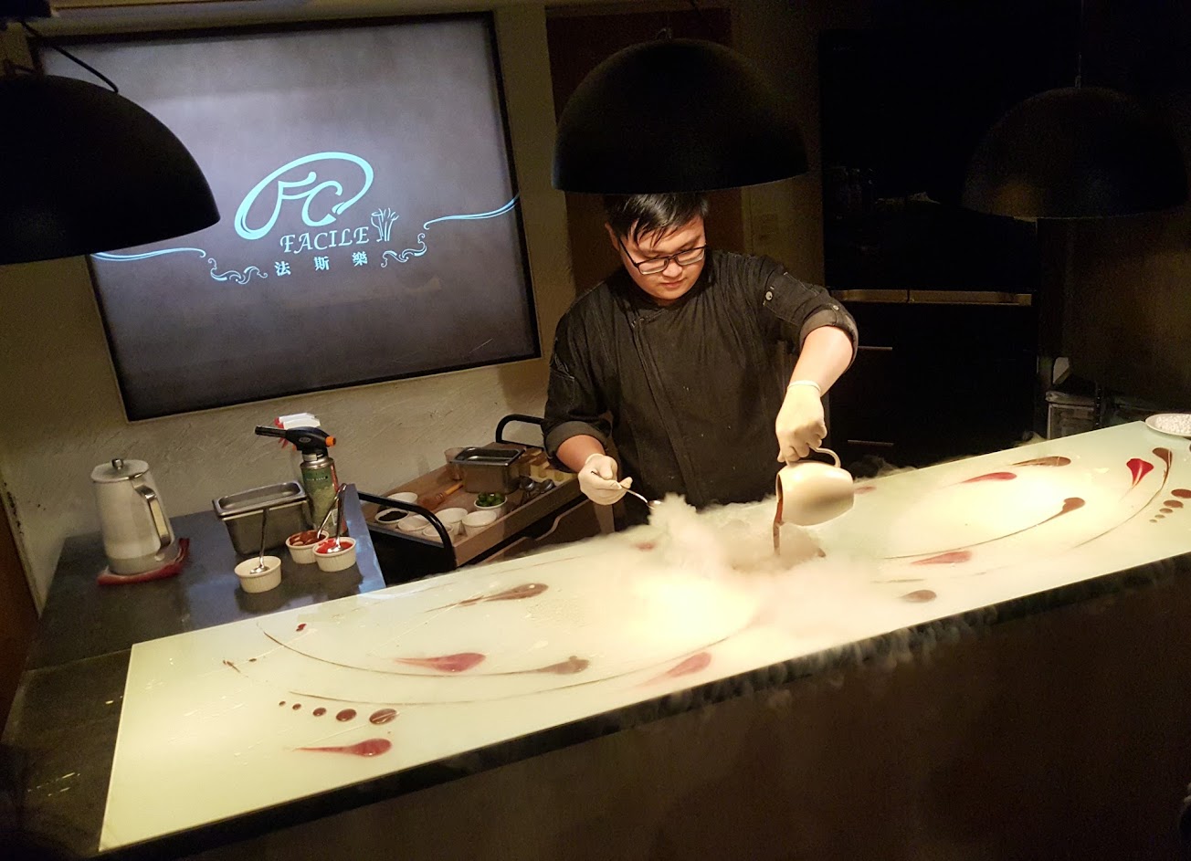 真的是法式料理,每一道菜間上菜約間隔5分鐘,慢食了近兩個小時,很棒的體驗。每道餐點主廚都會一一前來講解,從麵包開始就非常美味,然至第二道主餐,就略顯普通。 雖然每一道菜份量都不多,但整套餐吃完仍非常有飽足感!! 最後一道甜點乾冰秀,無疑是每桌客人驚呼的壓軸燈光秀,噱頭十足!! 可惜吃了一口檸檬塔後,開始覺得反胃,無法再做任何進食,不知道胃裏面發生了什麼化學反應,半個小時後到家,開始上吐下瀉…??看到了自己才剛吃進去的形體顏色又出現在眼前,內心五味雜陳… 應該吐到整套餐都不在胃裡了,人瞬間也舒服多了? 讓我回信起上次嘔吐是在15年前,吃了館前路的路邊滷味…無法忘懷的不適