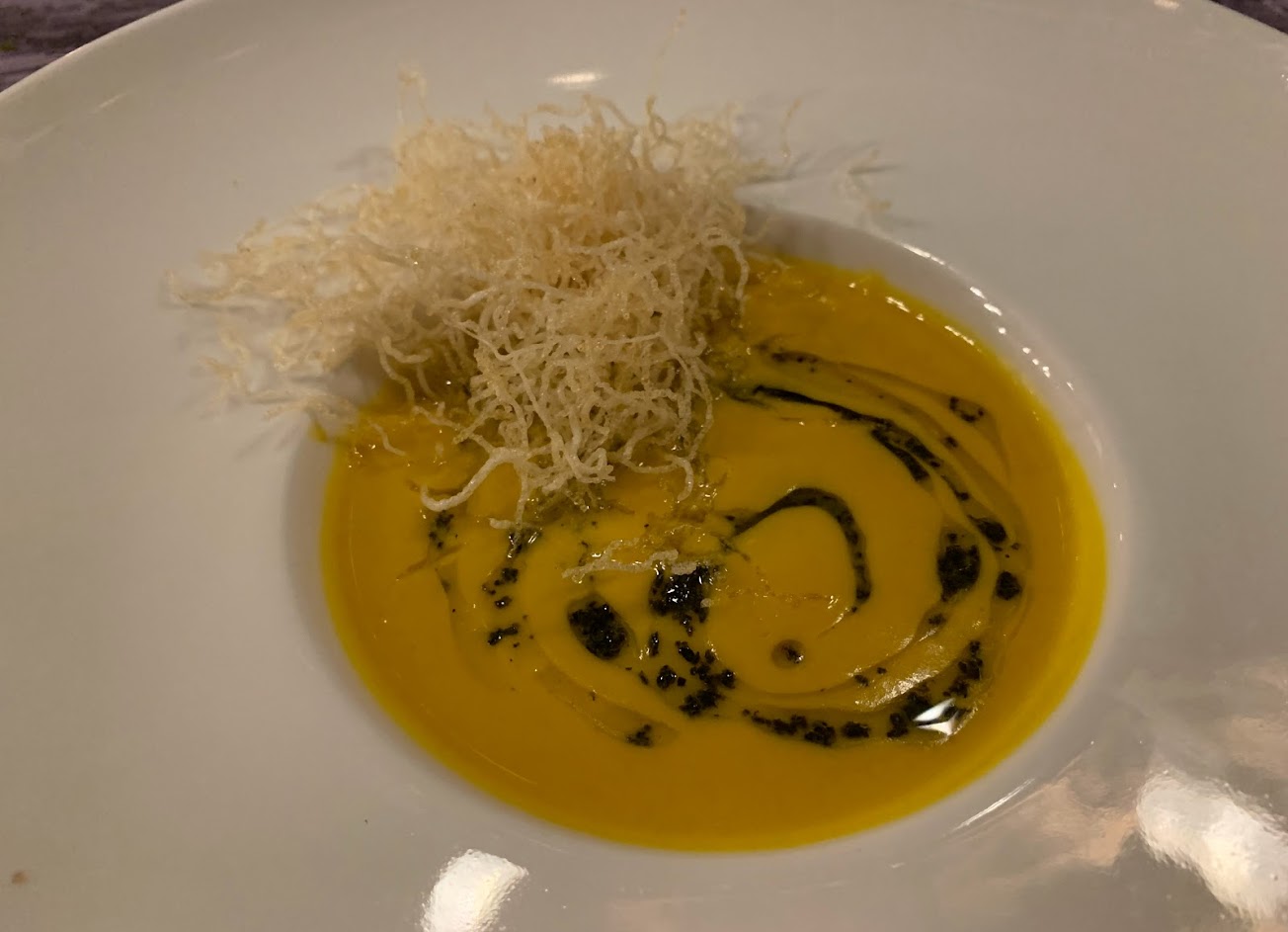 第四道松露南瓜濃湯 選用金山栗子南瓜 ㄧ送上濃濃的白松露味就撲鼻而來 南瓜濃湯非常鮮甜