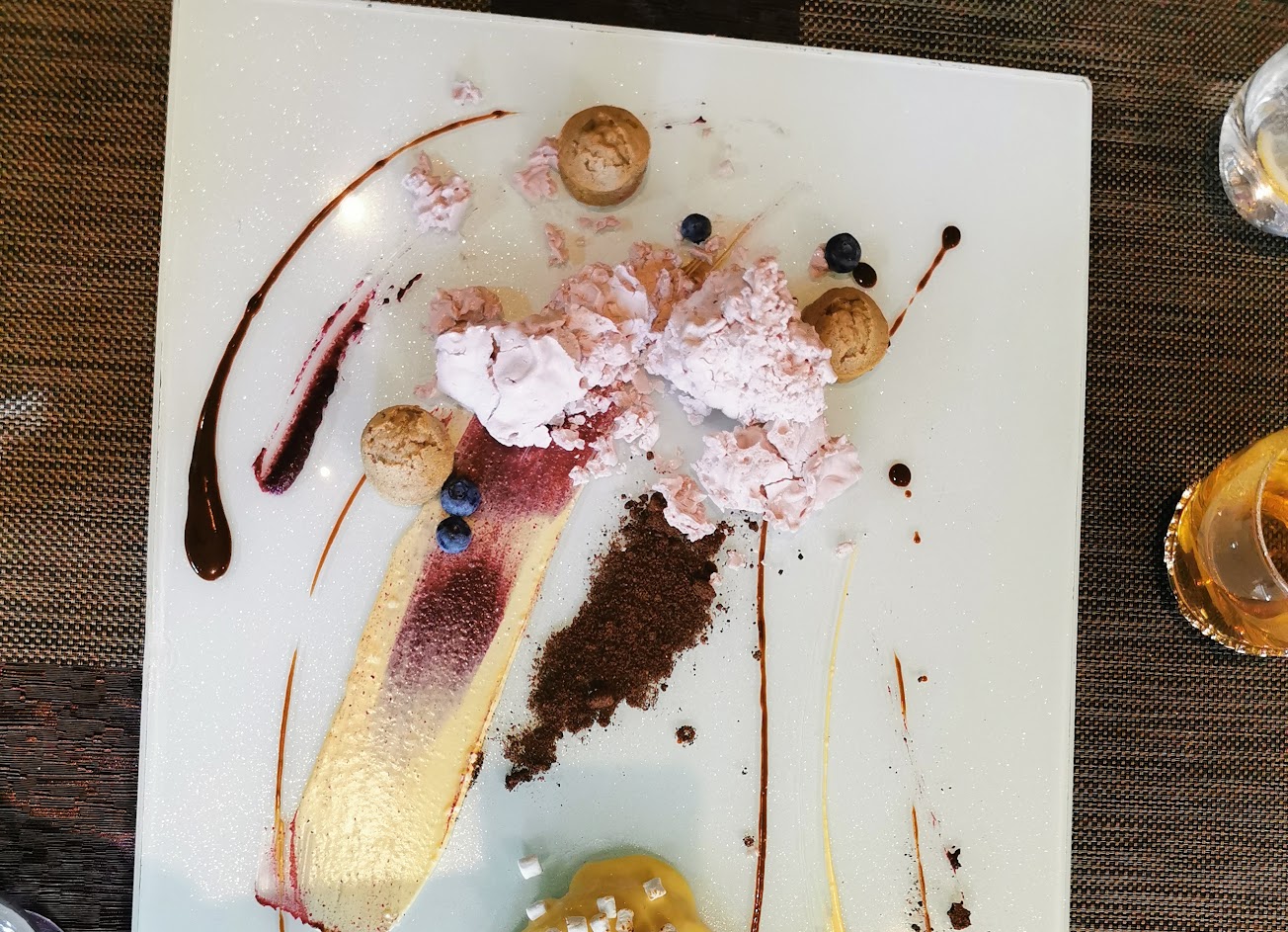 1.服務員從頭到尾沒有笑容,每個人都面無表情,沒有讓人放鬆的感覺。 2.需要主廚桌邊秀還要客人自己搬椅子讓位子。 3.桌邊秀結束,沒注意到防疫還要客人共享那大盤子上的甜點,也不主動提供公共湯匙。 4.其中橄欖油分子料理吃起來就是麵粉。 這個價位我寧願去吃連鎖的王品牛排就好。