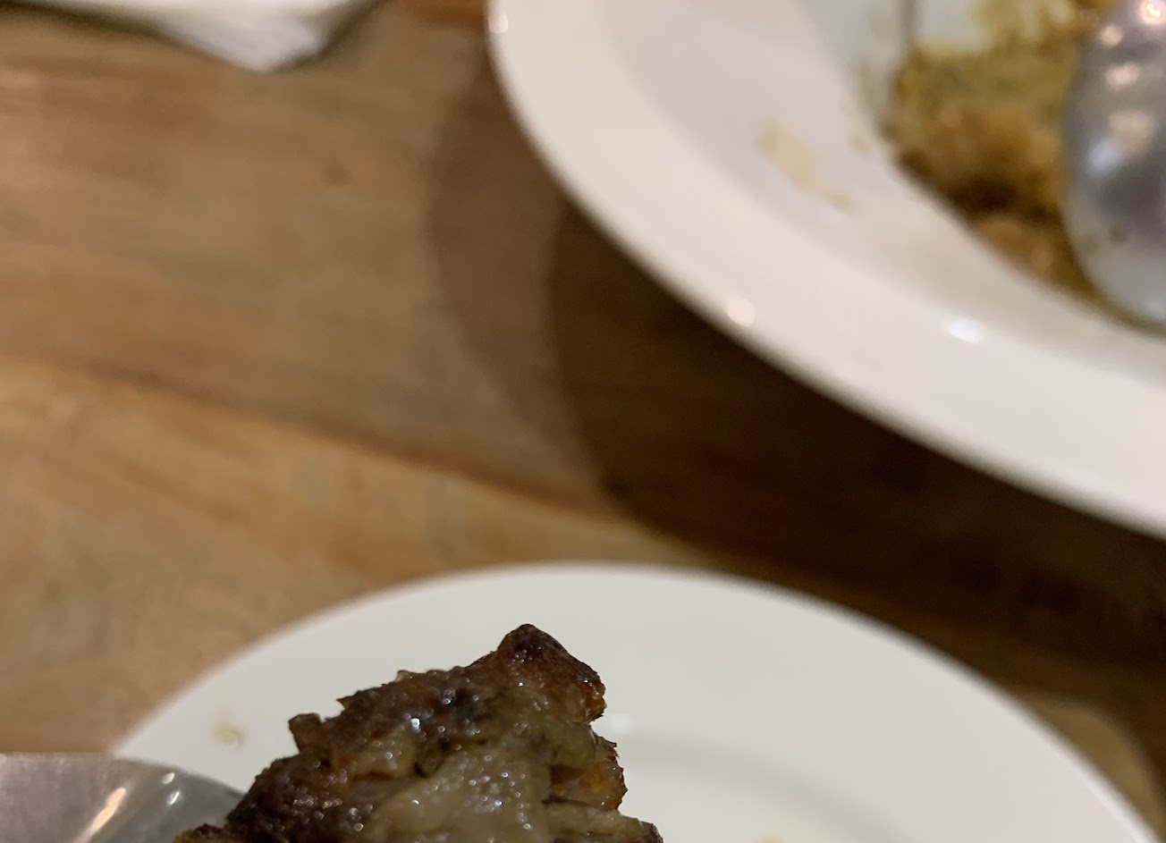 認真說晚上到訪時,在門口有點遲疑,進到餐廳裡面更有點想落跑的感覺,主要是室內燈光是白色光源,感覺整個空間很慘白,本以為餐廳的範圍很大可以好好的輕鬆享受,但是服務人員有規定座位的位置限定某個區域,桌間的空間又小,覺得有點浪費這麼大空間的配置,雖然可以了解這是跟賣場的公用空間,但是整體兩邊業態沒有很融合。餐點區餐具自備取用,餐點項目並不算多,所幸燉飯系列算是不錯,米粒顆顆分明但充分吸取湯汁,所以風味上來說相當不錯,牛肋條燉煮過後應該有再煎烤,軟嫩易入口,但是豬肉就相對乾澀,份量跟味道都無法加分。
