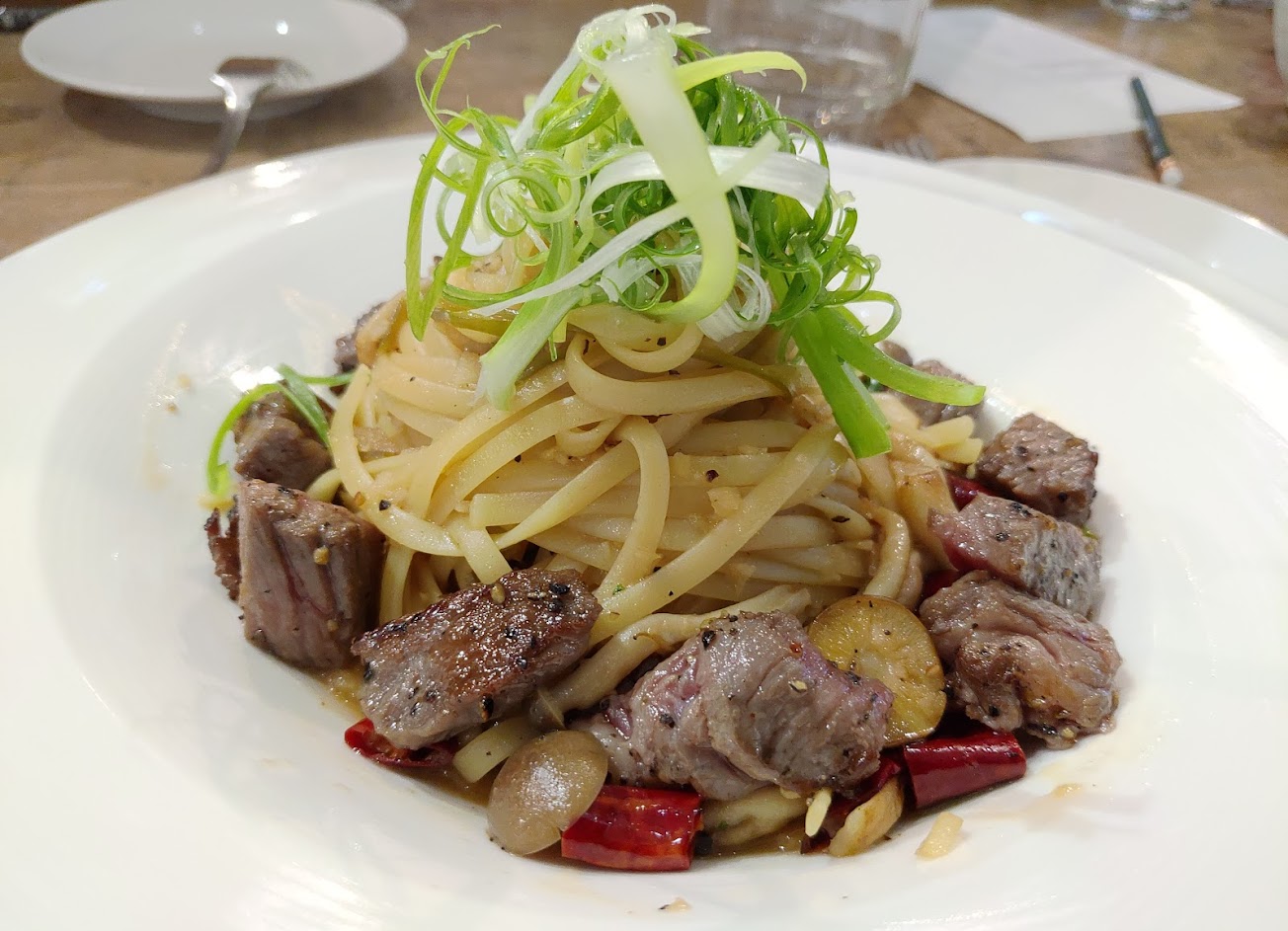 *嫩煎牛小排炒義麵很推!牛肉還蠻多的