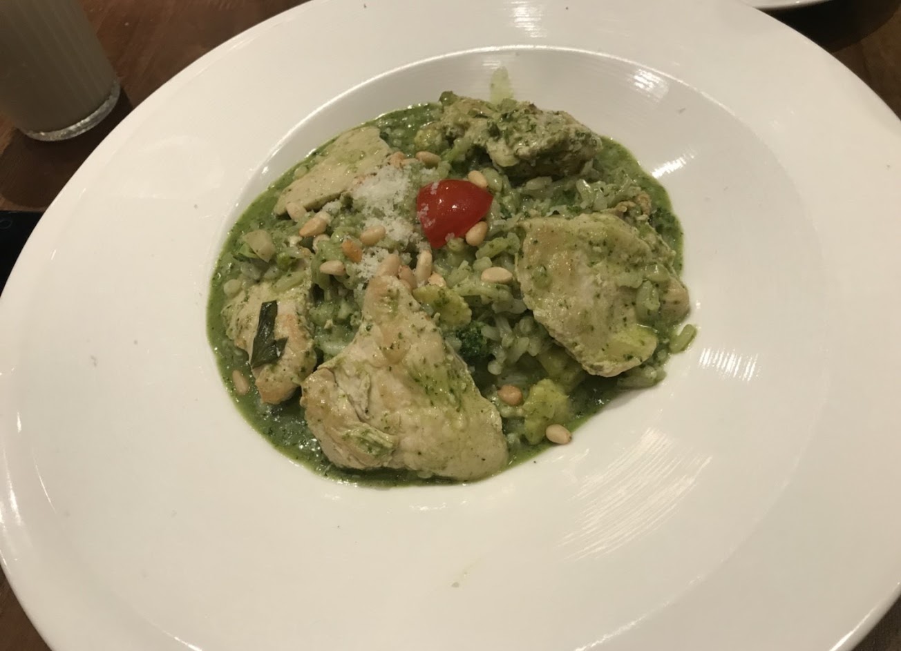 餐點好吃,環境舒服? 青醬義大利麵看起來小小一份,但其實麵的份量其實滿足夠的(個人感覺) 如果是和朋友一起去吃建議可以點不同的餐點交換吃,才不容易膩~ 飲料的部分果汁很好喝!(那時候喝到的是蘋果+鳳梨) 奶茶、牛奶的話覺得普普