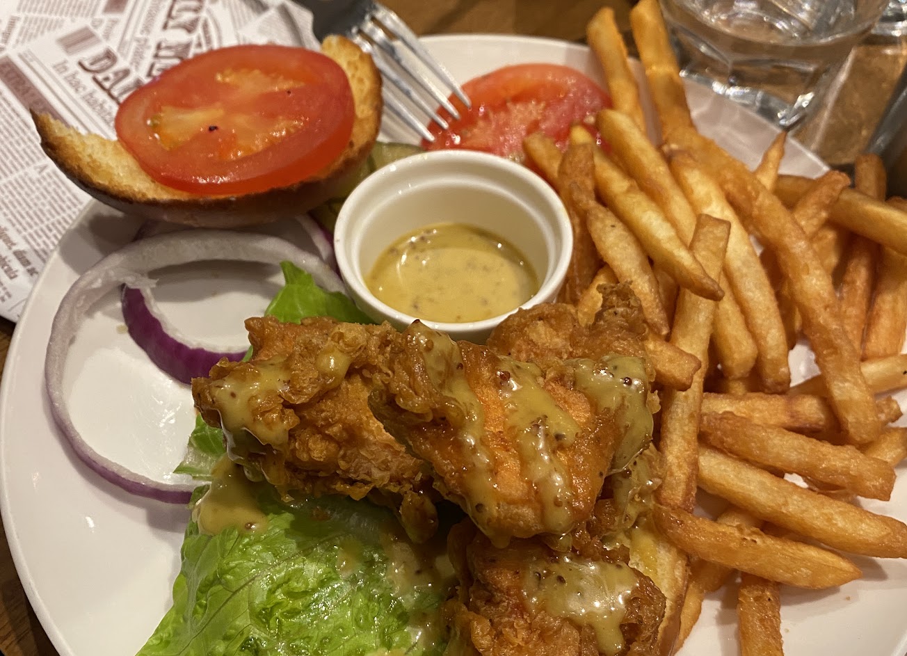 環境是不錯,但價位偏高,實際餐點美觀度不高,跟官方圖片有差,品質也不穩定,朋友們點蛋捲吃起來都不太一樣,有人蛋捲超硬像饅頭難以下嚥… 所以我特地點招牌就是怕被雷…漢堡我覺得普普,薯條不脆而且有點空虛,幾塊也還好,整體而言餐點就是能填飽肚子,但配上這個價位不太行? …