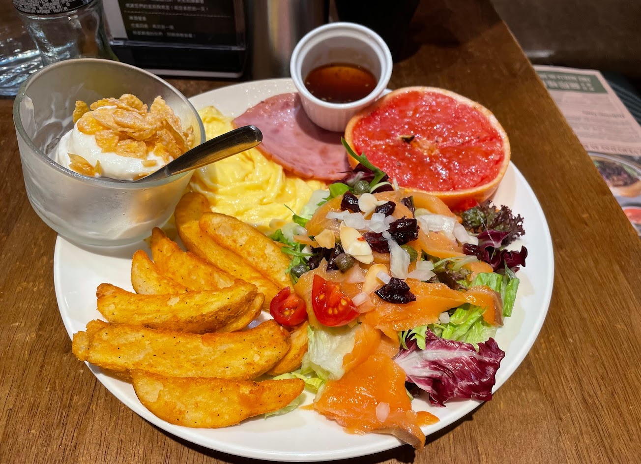 這次餐點選擇《美國佬早餐》,烤葡萄柚很特別,但味道沒有這麼驚艷。不過整體口味算好吃。