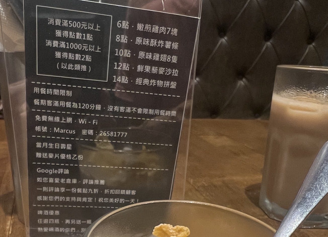 平日晚上當天也只有二組客戶,點了早午餐套餐竟然還漏上了可續杯的飲料,雞翅焦黑又硬,東西也不好吃,服務也不佳,整體體驗非常差,讓朋友大老遠專程跑來內湖用餐,本來看了高評價來吃的結果踩了大雷,對朋友非常不好意思,非常不推薦,要來的請三思。