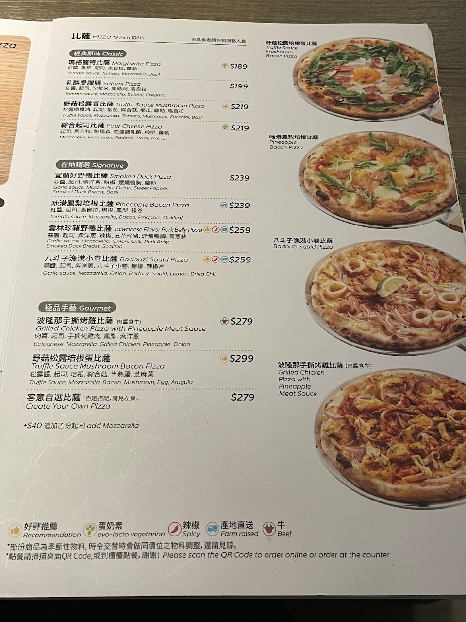 食物擺盤好看,口味也還不錯 不過pizza是手工的皮,形狀上比較不是那麼完整圓形,但不影響口感 可以三五好友相約聚餐聊天,沒有限時間