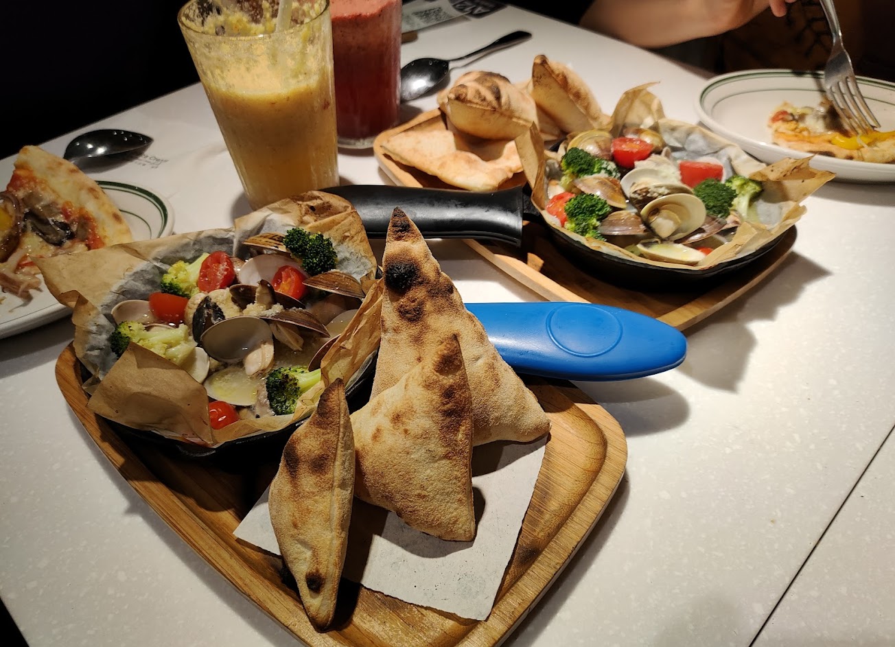 這次前來消費了 自選披薩(雖然被我們胡搞了配料的,但廚師還是做得很好吃)、厚切牛地中海能量餐、香焗鮭魚地中海能量餐、黃金沙烤雞翅。