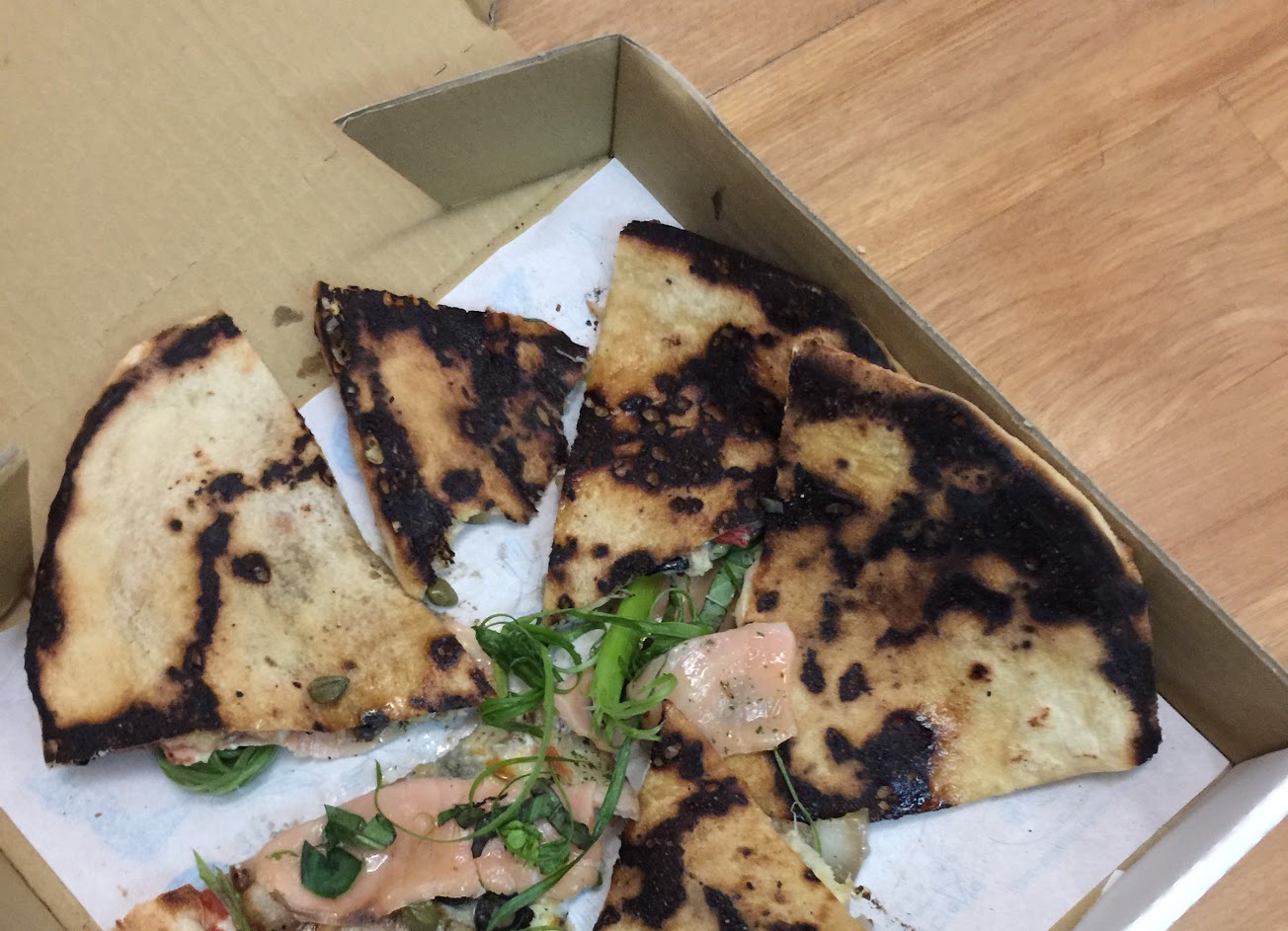 這次訂誠實蜜蜂的外送,訂了三種pizza都好吃,瑪格愛肉醬(九層塔香加上牛肉醬~)、八斗子小卷(小卷鮮甜加上紫洋蔥~附一顆檸檬去腥)、焦糖蘋果酥薄餅(肉桂醬加蘋果還有甜酥粉,一口接一口啊)。