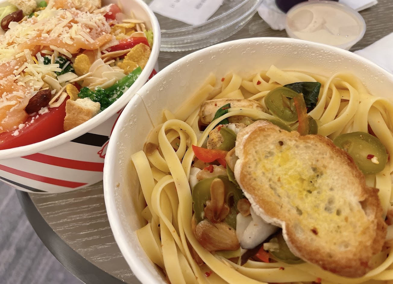 現場點了外帶餐點 義大利麵幾乎沒味道,也沒什麼料 沙拉,也蠻普通