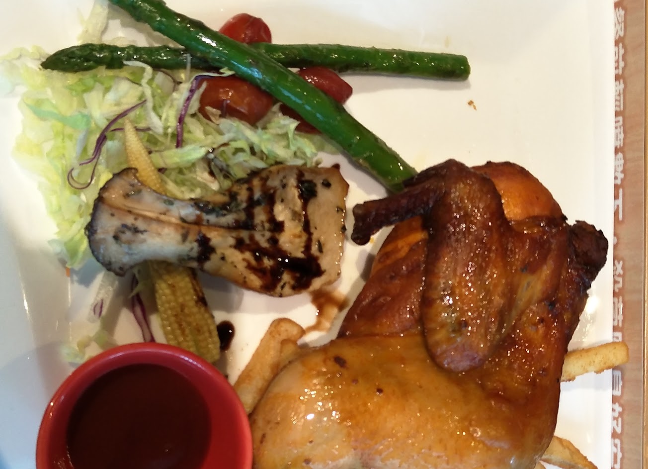 遛小孩的好去處,最近剛好有1380排餐送半雞的活動cp值覺得還可以,配菜的重複性高,pizza推