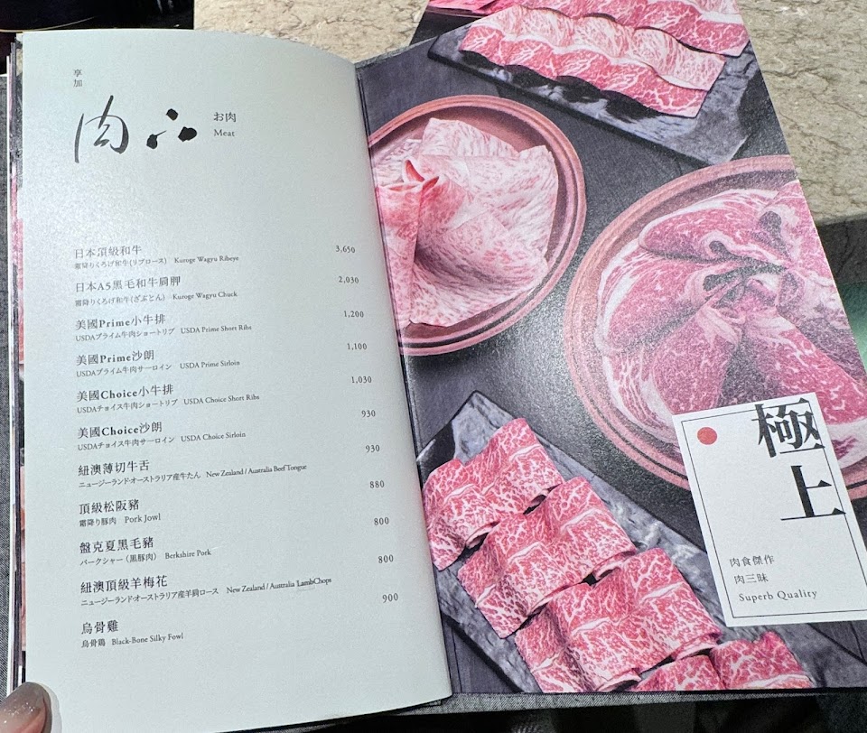 餐點都在水準之上,蔬菜雖說鮮甜好吃,但在種類似乎與平價火鍋沒有太大差異,在這個價格上讓人較為失望,和牛、海鮮較為出色,總體來說份量稍嫌不足性價比較低,若預算足夠值得嚐鮮