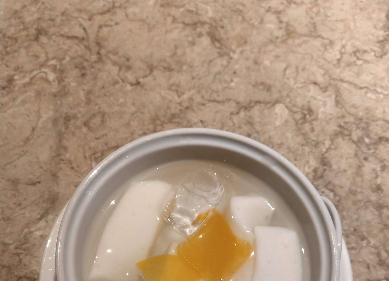 甜點當然是橘色的招牌,杏仁豆腐。 吃起來有筋性卻有嫩豆腐的口感。 店員的服務也很親切,我到的時候大約七成滿,點餐的速度與整理桌面的速度很有效率,一定會再光顧的餐廳。