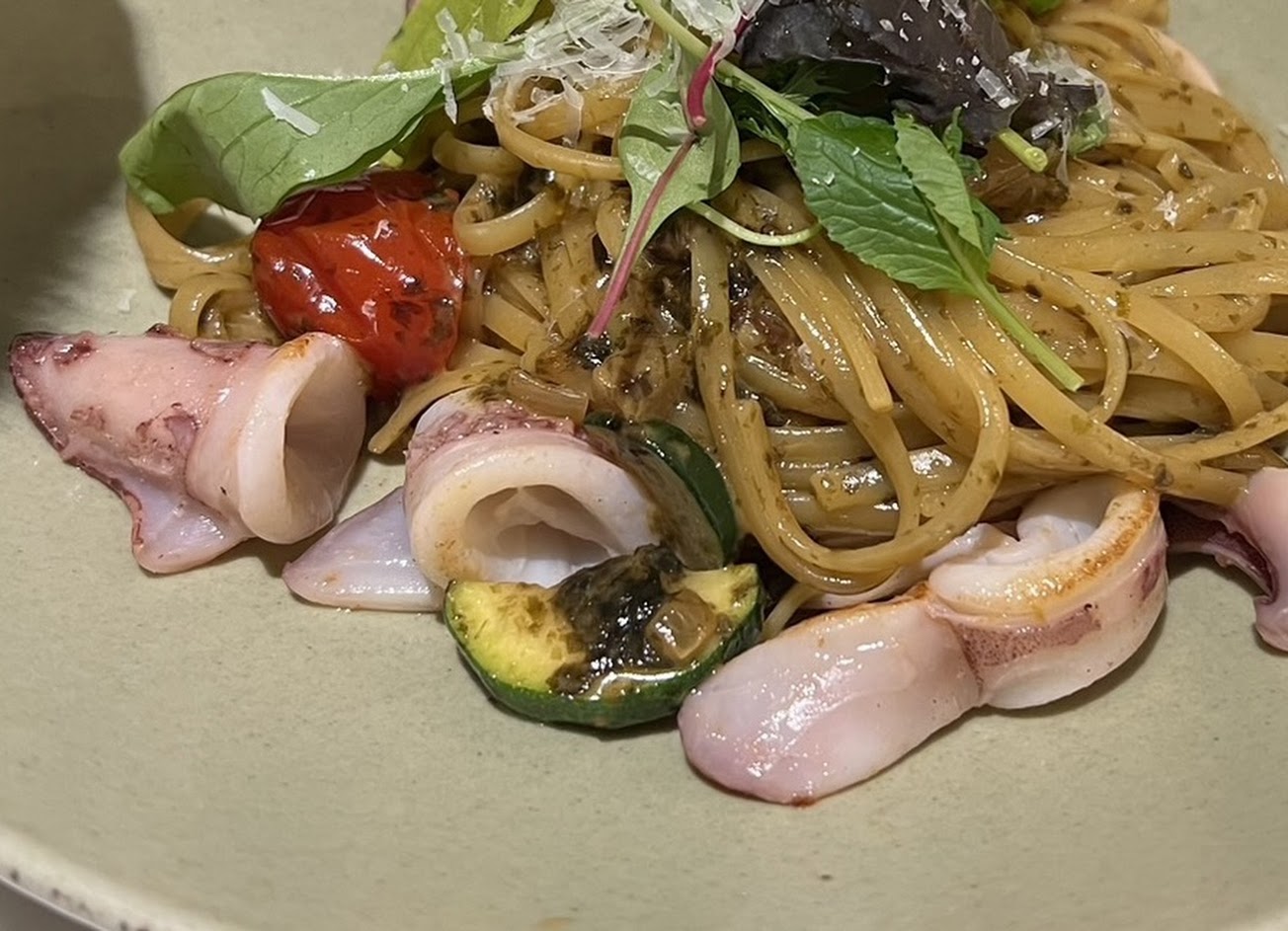 好巧不好,我們點的另一份餐點也有中卷,一樣很生.. 只能再次跟服務生反應,隨後聽到內場人員說「這有熟啊」 果然是我見識淺短,不知道中卷可以生食,原來我們吃的是生食級中卷