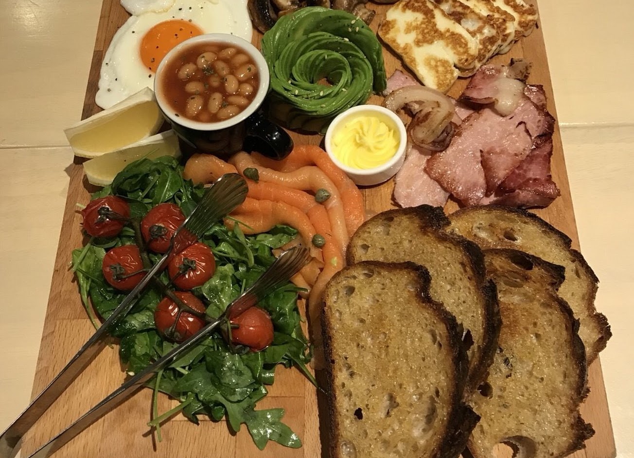 好吃?會轉圈的歐式香煎酸種麵包?跟微焦的哈魯米起司?,是台灣早午餐桌上比較少有的,自由拼湊在麵包上的食材,有自製Tapas的概念??有我喜歡的酪梨花??和服務親切的店員們❤ …
